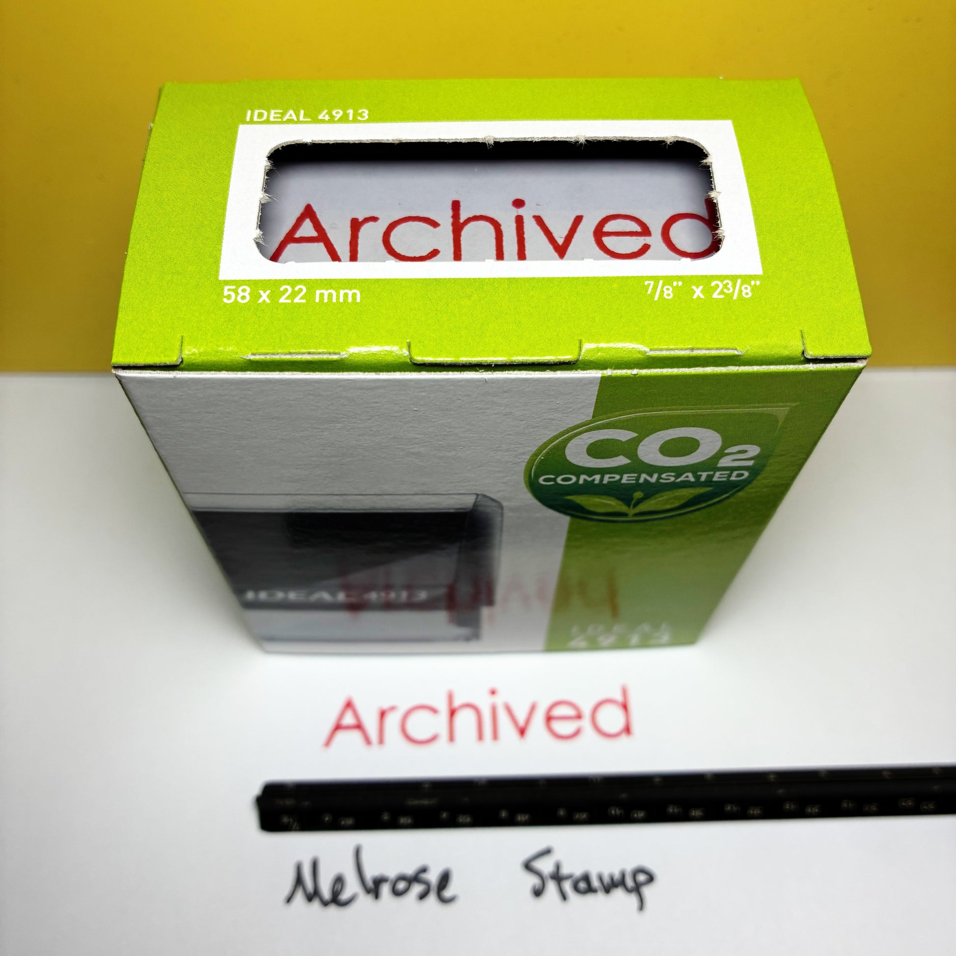 The Ideal 4913 Stamp Model has an Impression Area of: 2.38" length x .88" width/height (58 mm x 22 mm). Stamper can be re-inked for thousands of impressions. Don’t settle for smaller stamps!