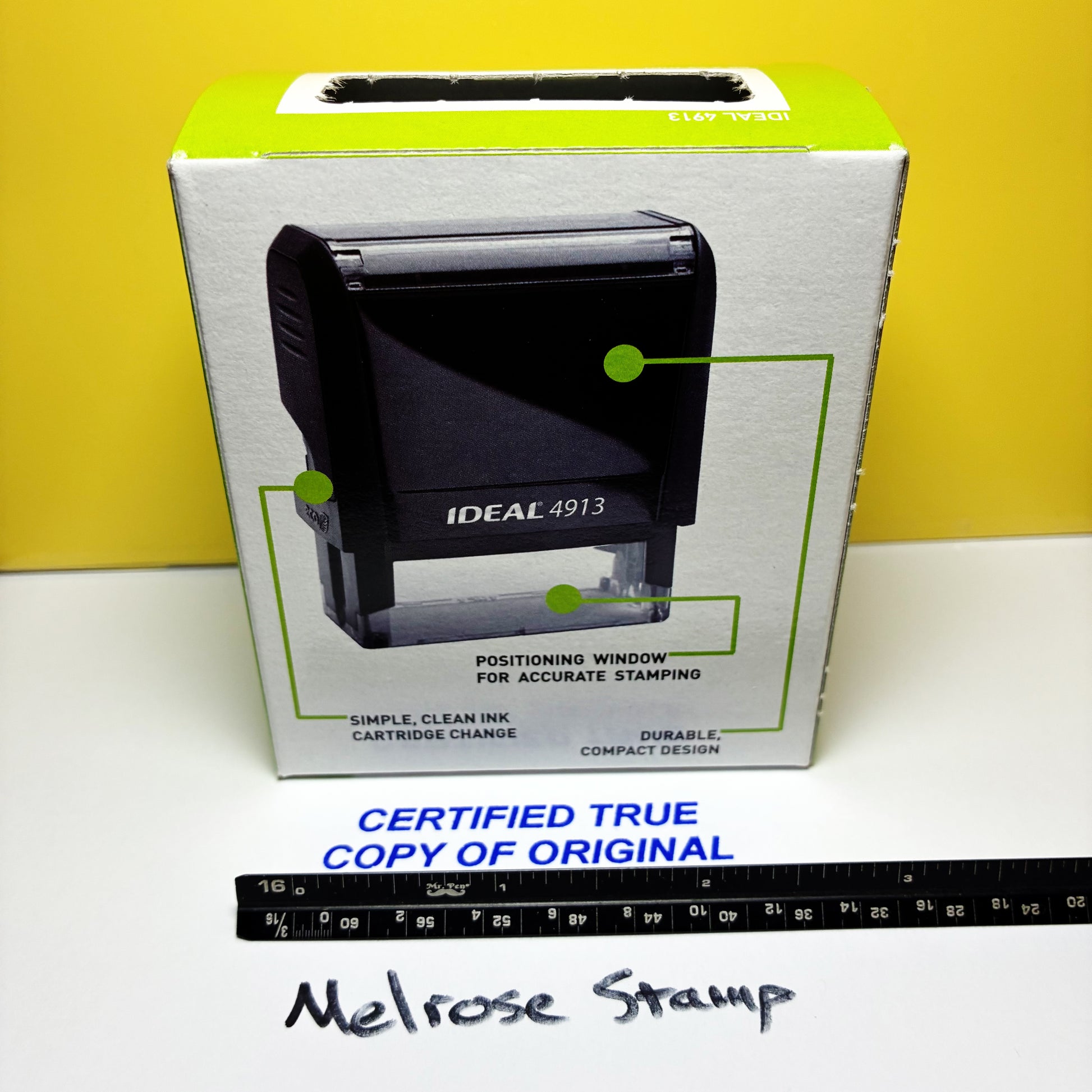 Certified True Copy Of Original Rubber Stamp Blue Ink Ideal 4913. Condition is new. Shipped with USPS.