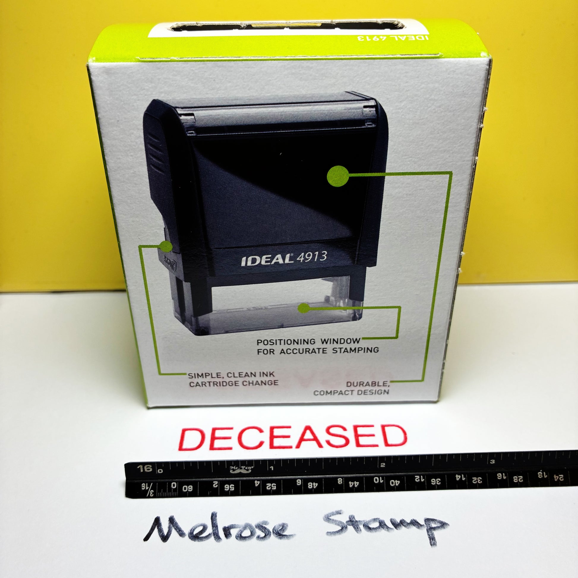 Deceased Rubber Stamp Red Ink Self Inking Ideal 4913. Condition is new. Shipped with USPS.