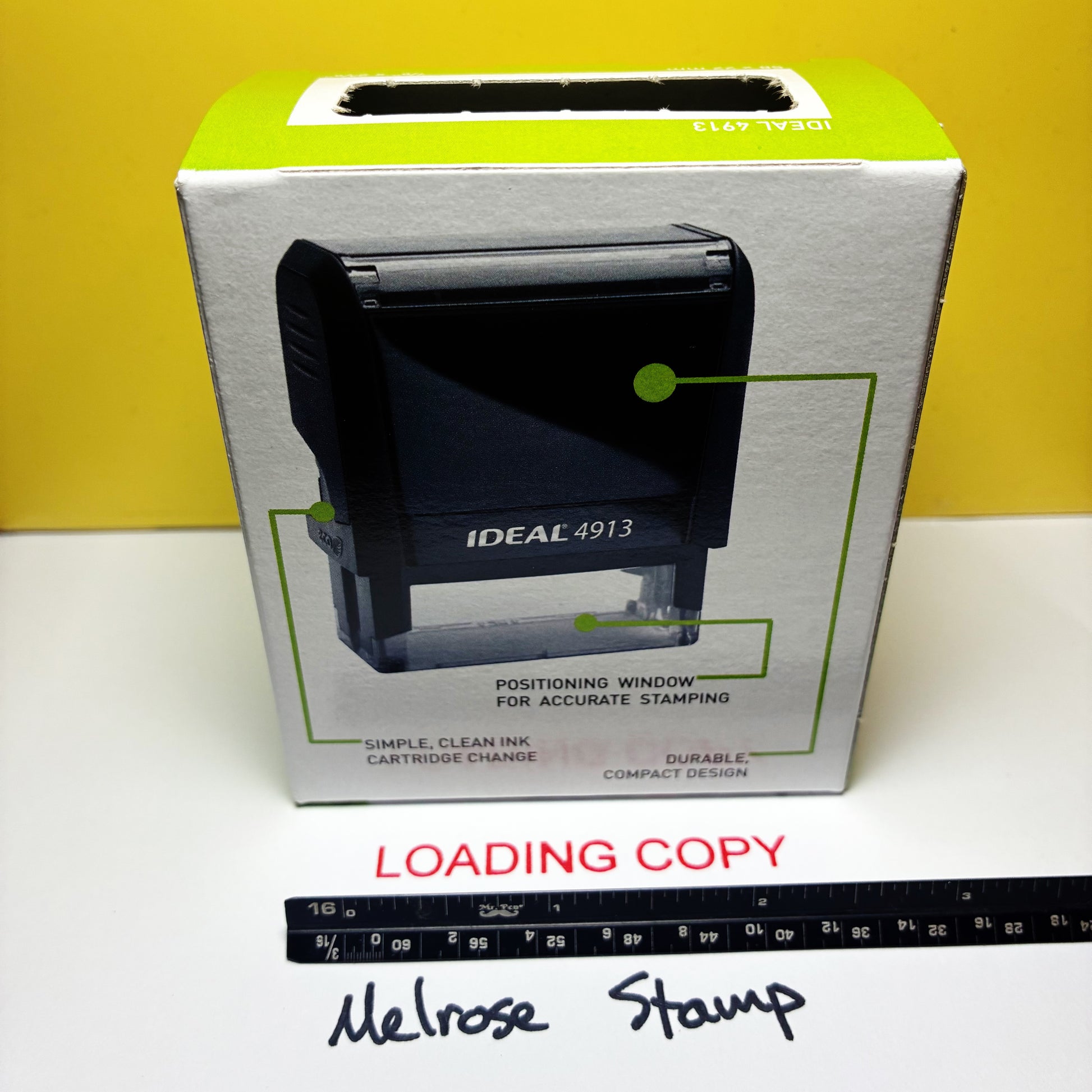 The Ideal 4913 Stamp Model has an Impression Area of: 2.38" length x .88" width/height (58 mm x 22 mm). Stamper can be re-inked for thousands of impressions. Don’t settle for smaller stamps!
