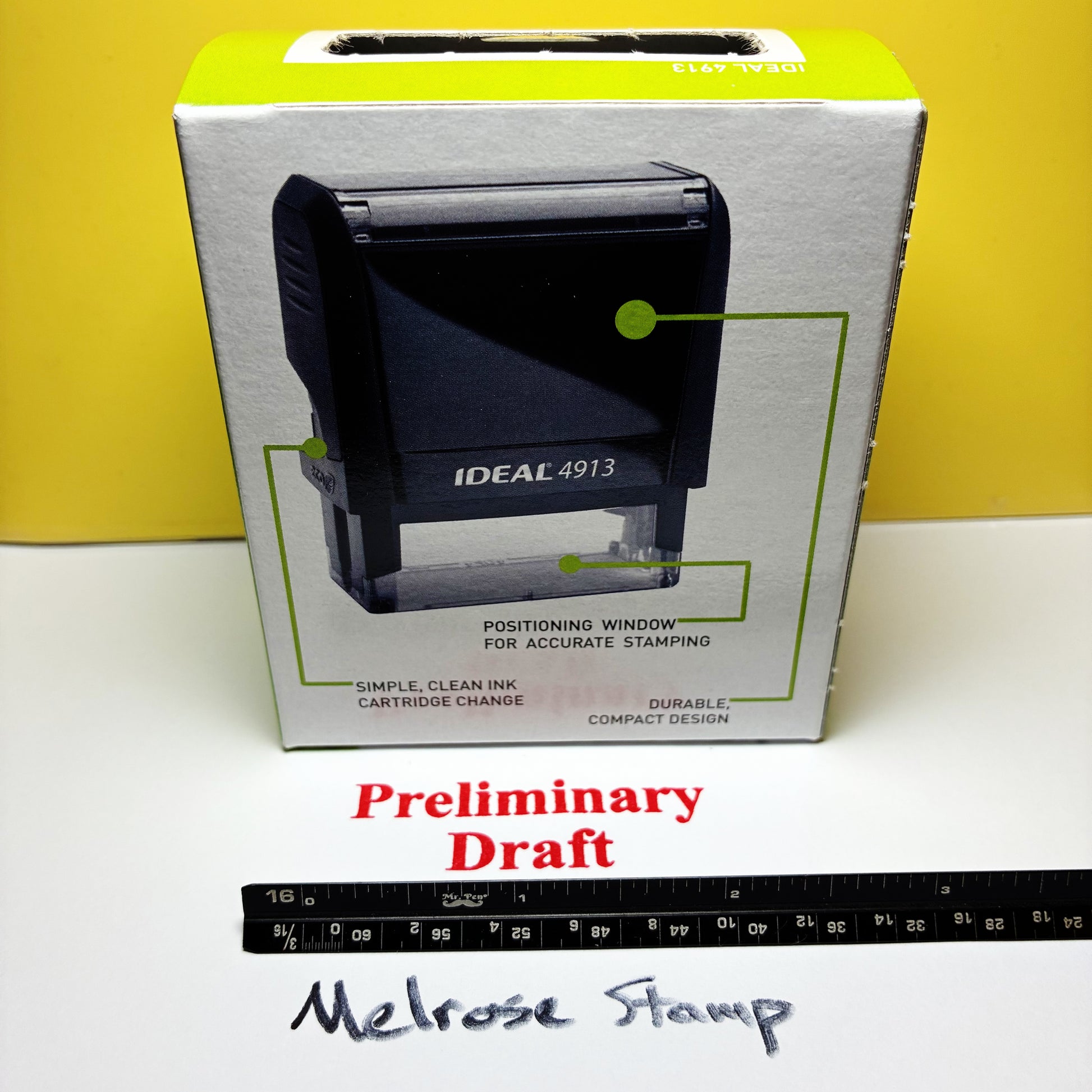 Preliminary Draft Rubber Stamp Red Ink Self Inking Ideal 4913. Condition is new. Shipped with USPS.