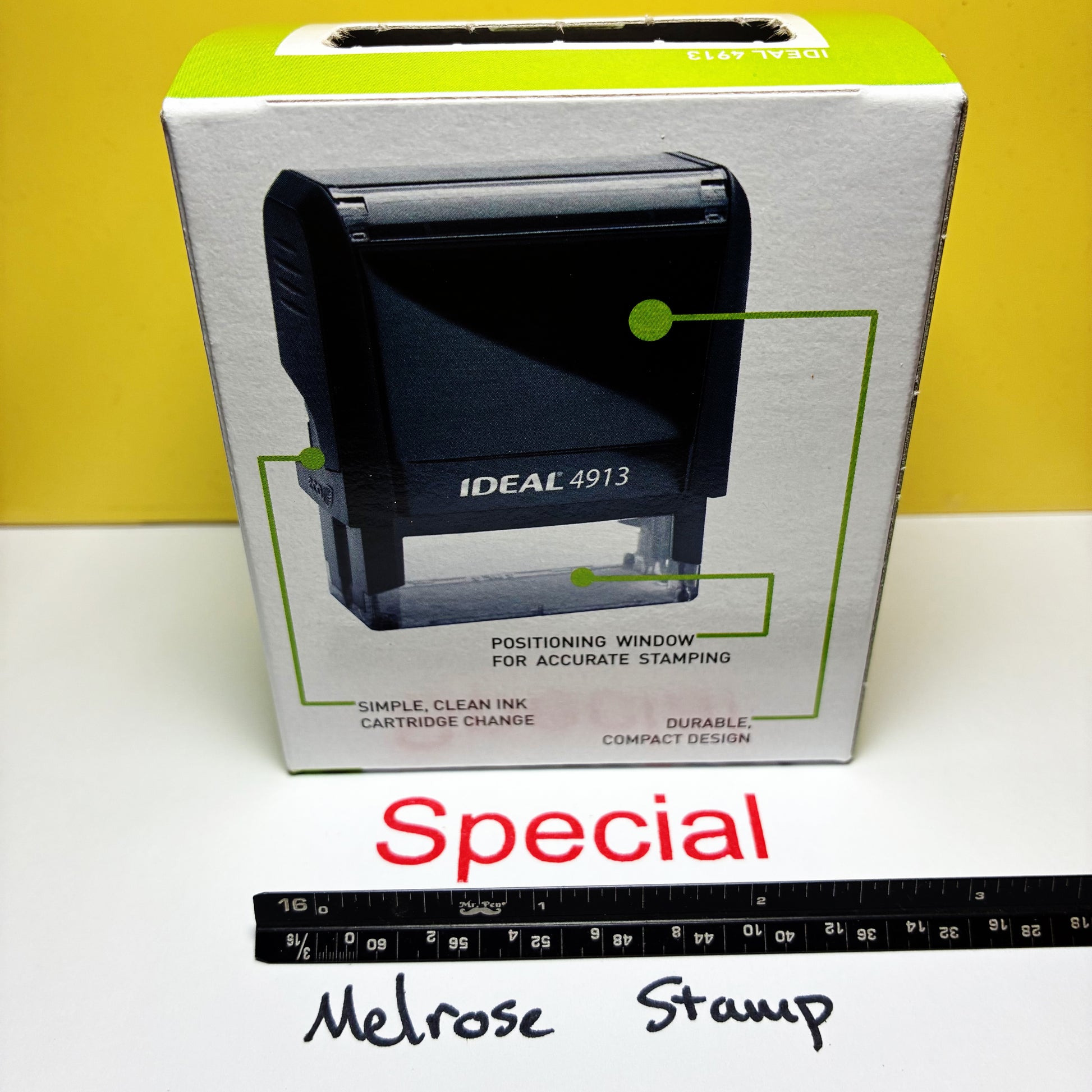 Special Rubber Stamp Red Ink Self Inking Ideal 4913. Condition is new. Shipped with USPS.